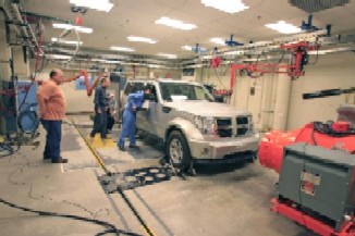 現在、走行試験路、走行状態を再現する動的試験装置等を使用して、制動装置試験、排出ガス試験、また自動車の衝突試験施設を使用して、前面衝突時の乗員保護の試験並びに自動車の装置等の各種の試験を実施しています。これらの試験は、調布本所並びに走行試験路等を有する自動車試験場及び試験場第二地区で実施しています。